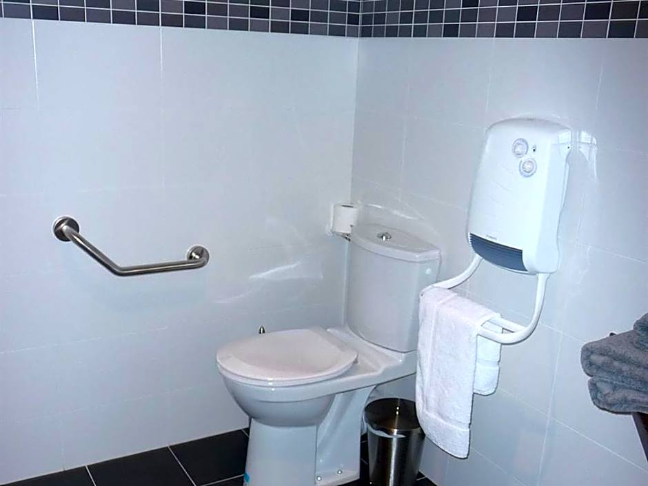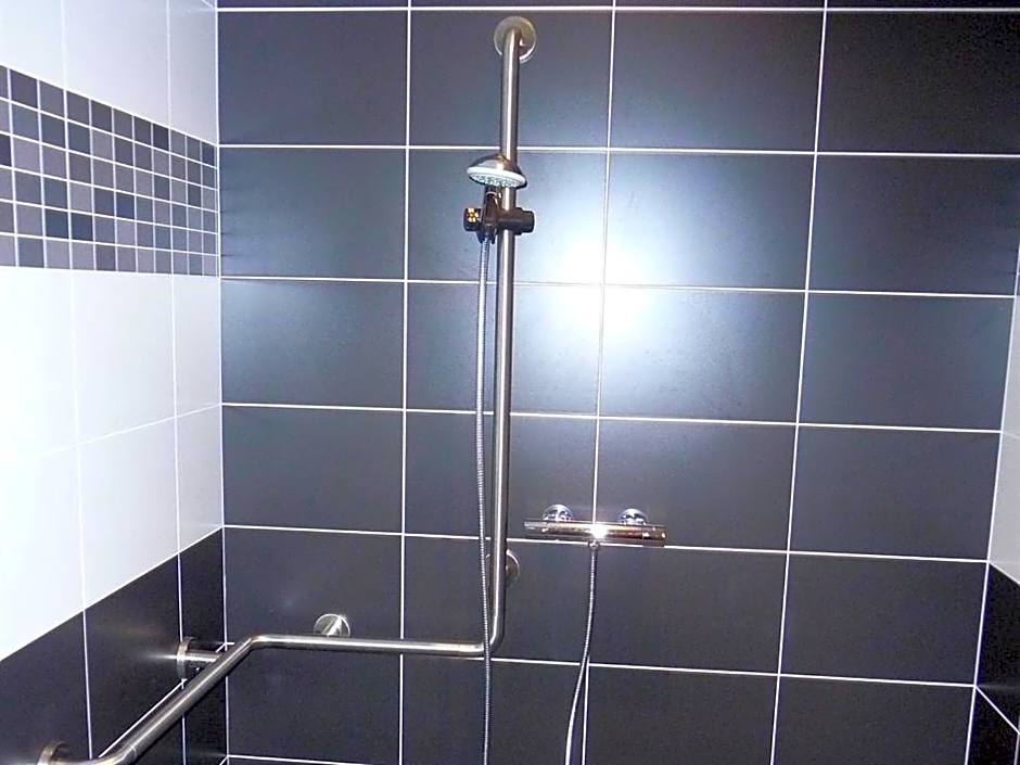 The twin room features a private bathroom equipped with a shower and a hairdryer.